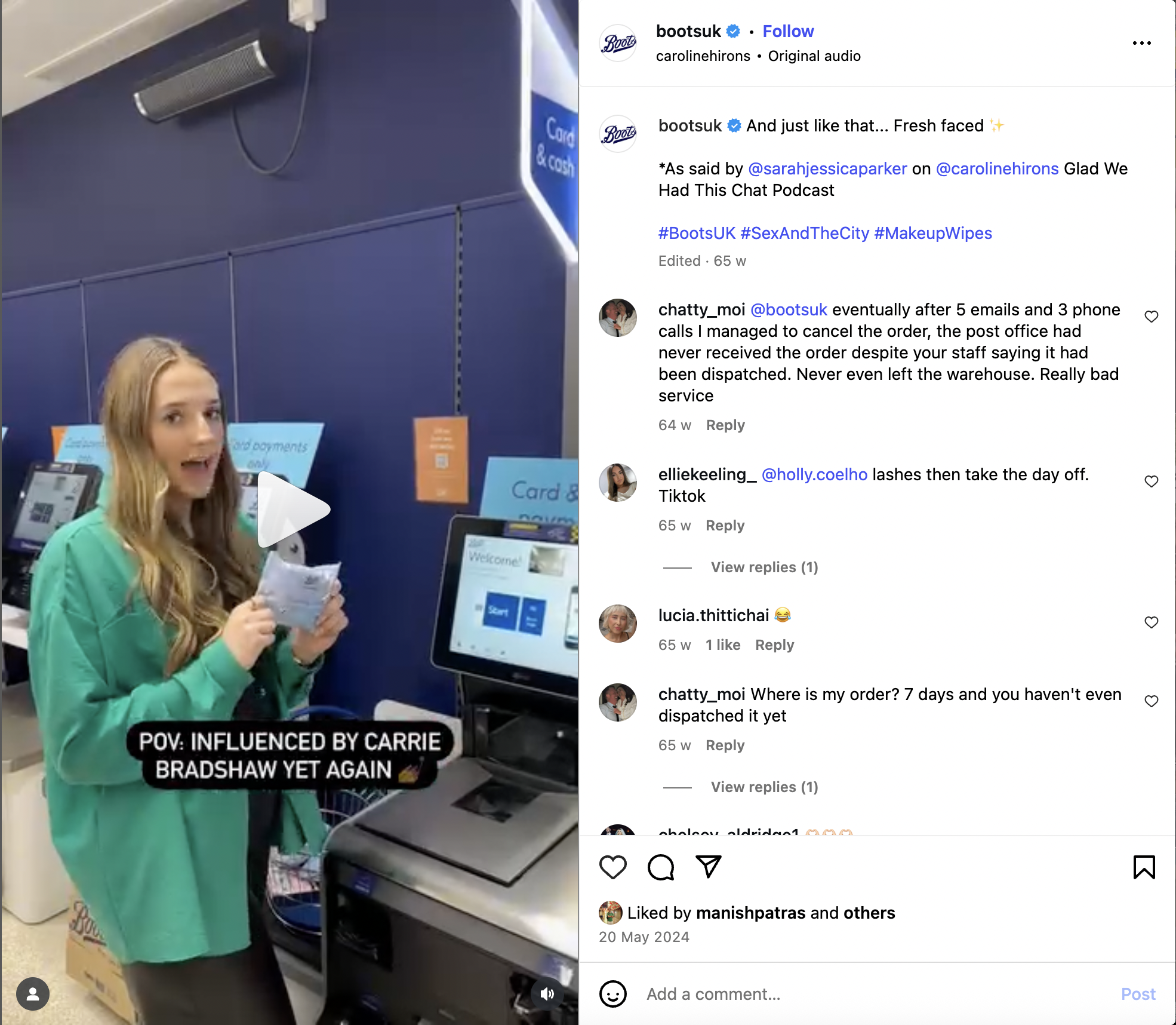 Following the overnight success of series 1’s launch video, featuring Sarah Jessica Parker, the clip I edited became a trending sound and was even repurposed by Boots for their own Instagram campaign, which currently has over 90K views.