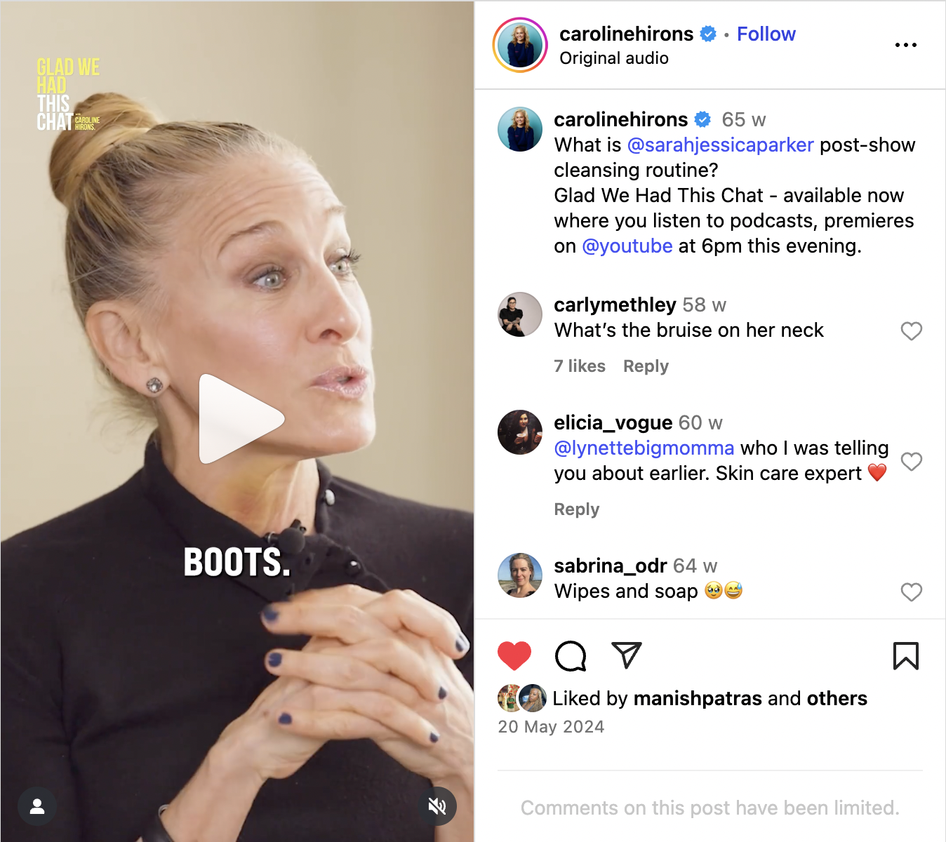 At Warner Bros. Discovery, I played a lead role in the social media launch of the UK’s No.1 skincare podcast, Glad We Had This Chat.